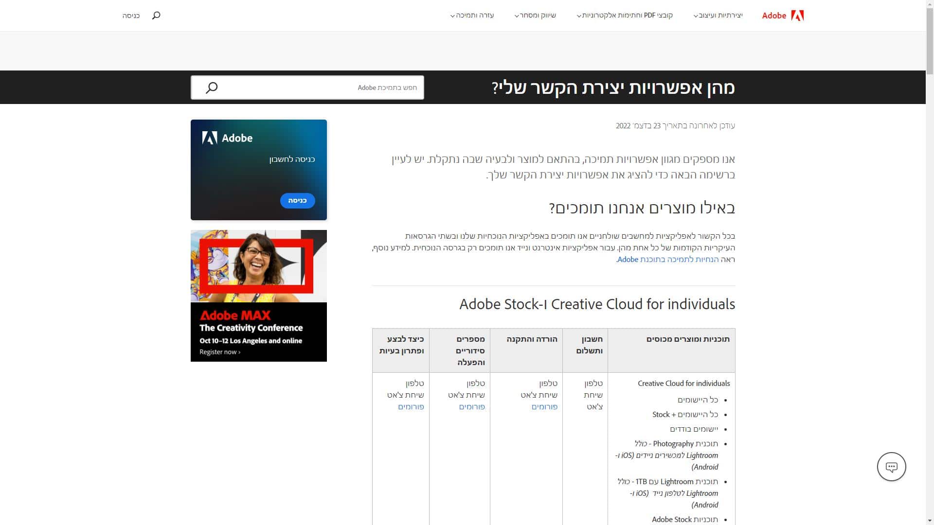 אדובי – Adobe – שירות לקוחות באתר האינטרנט
