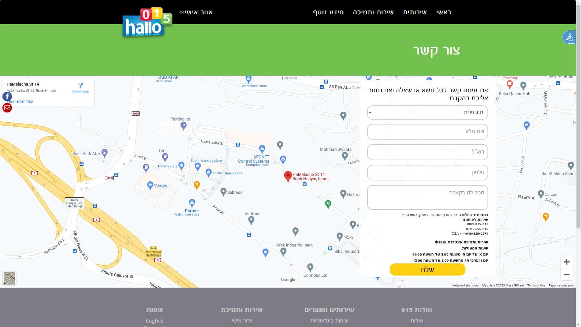 הלו 015 – שירות לקוחות – כתובת
