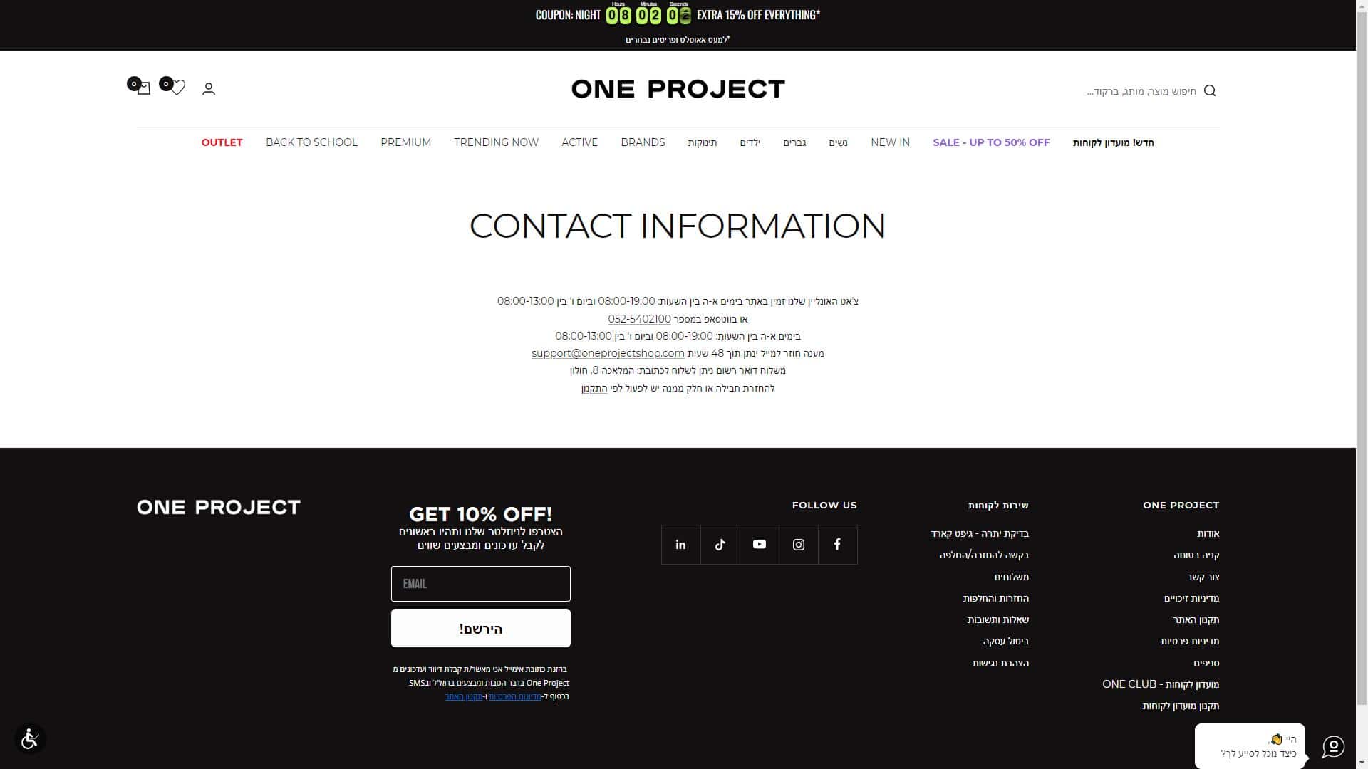 וואן פרוג'קט – One Project – שירות לקוחות – מייל – Email