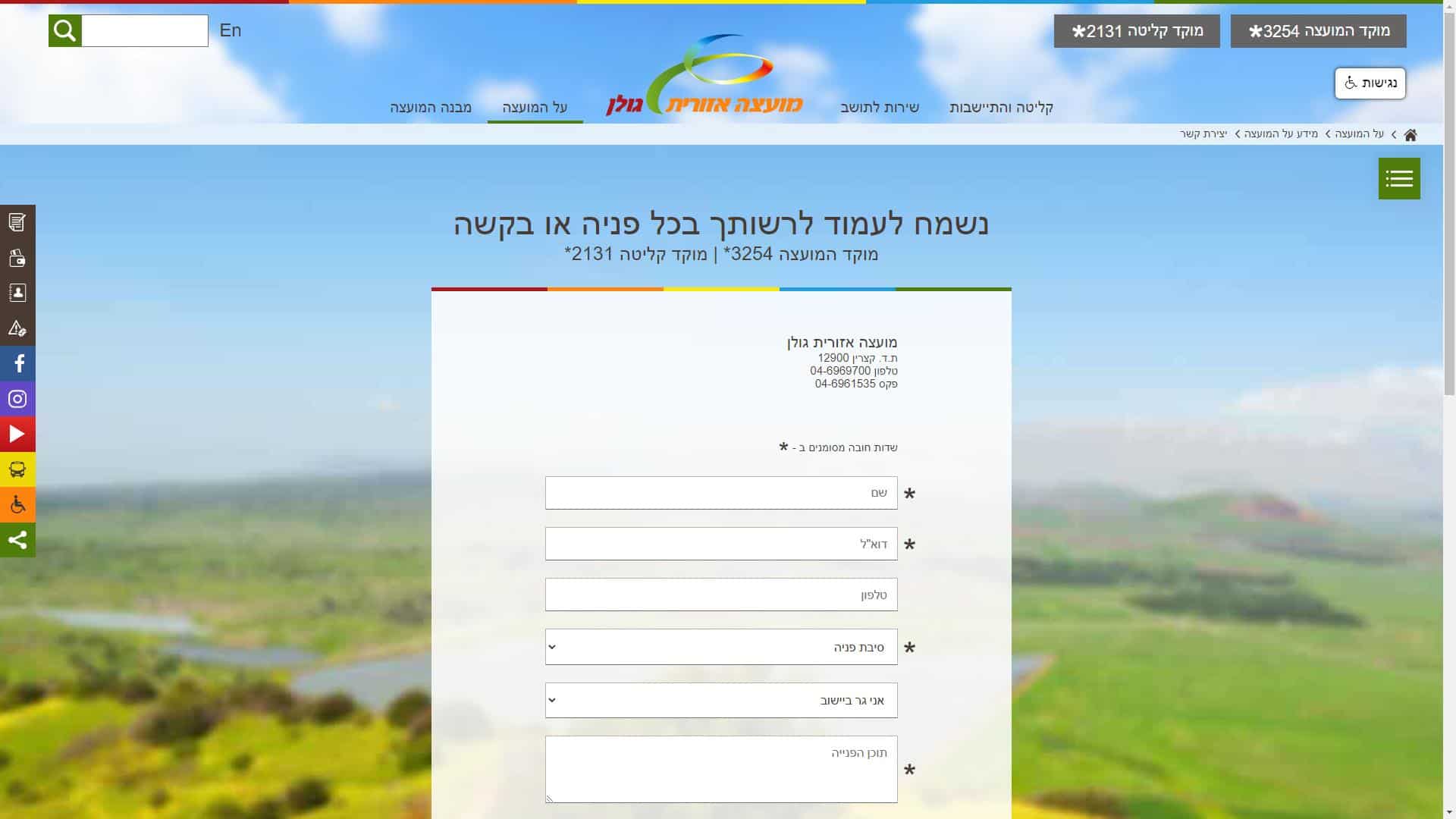 מועצה אזורית גולן – שירות לקוחות – אתר אינטרנט