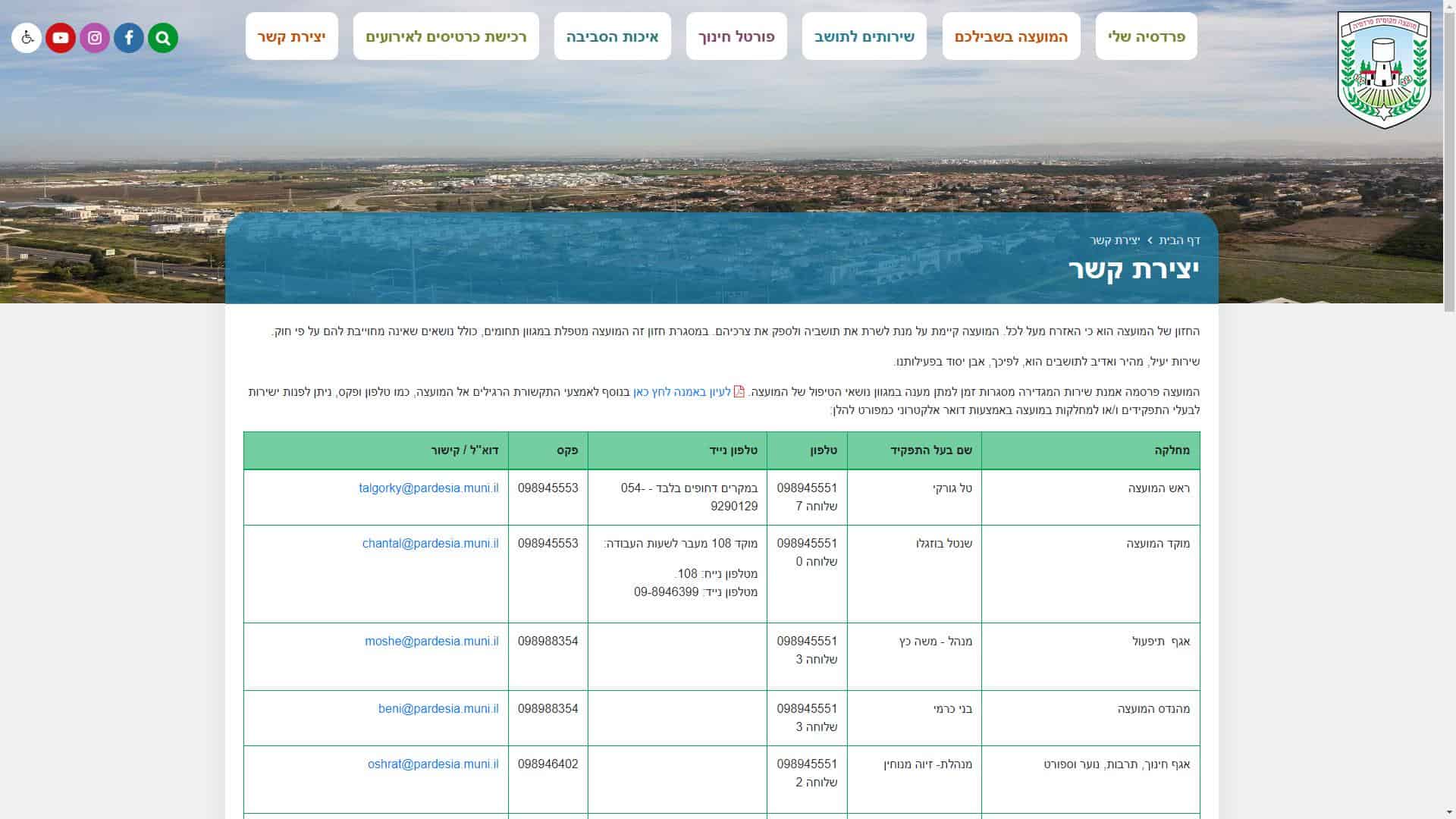 מועצה מקומית פרדסיה – שירות לקוחות – אתר אינטרנט