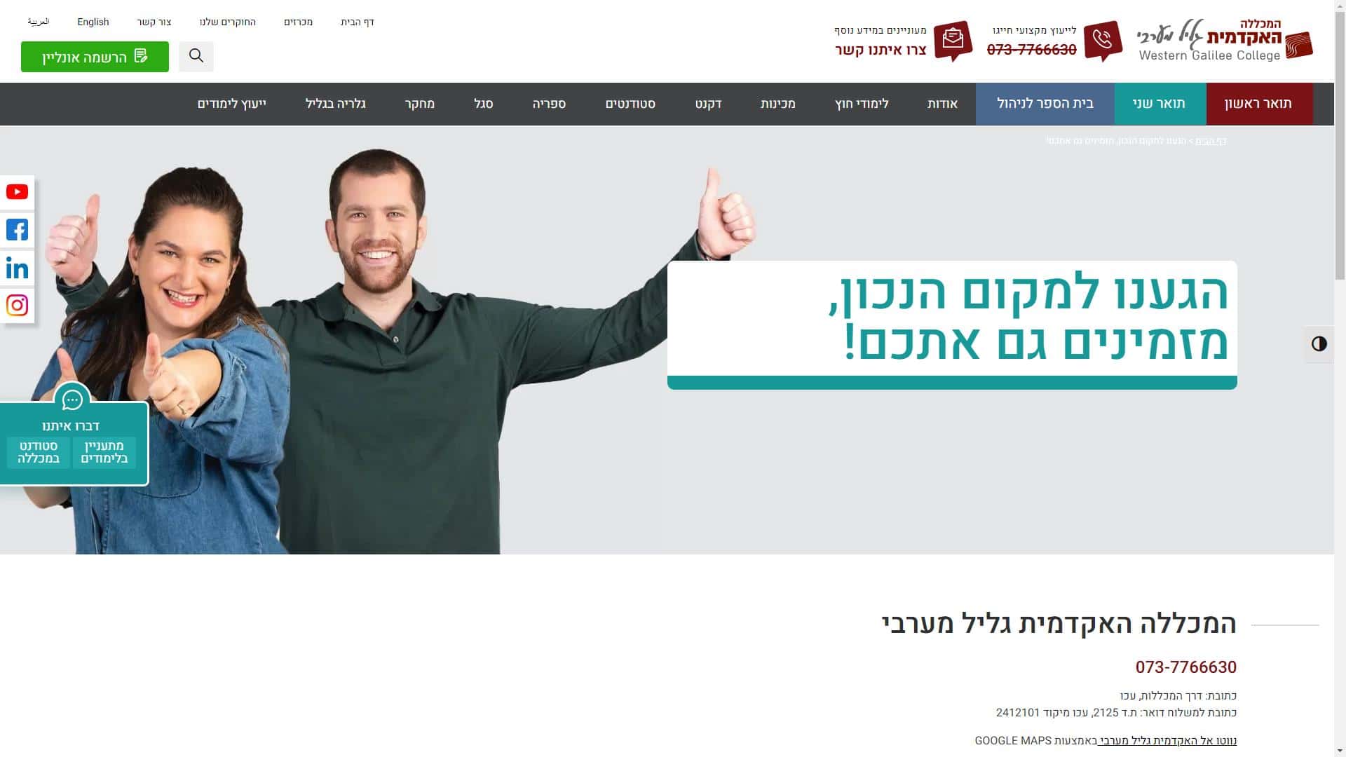 מכללת גליל מערבי – שירות לקוחות – פייסבוק – Facebook