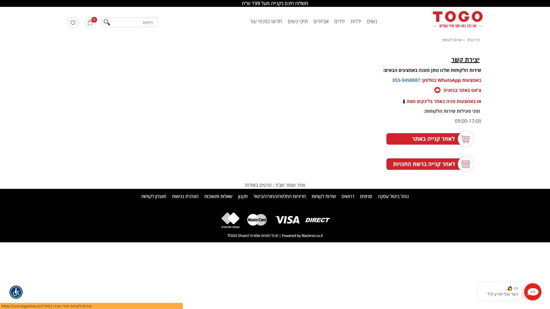 נעלי טוגו – TOGO Shoes – שירות לקוחות באתר האינטרנט