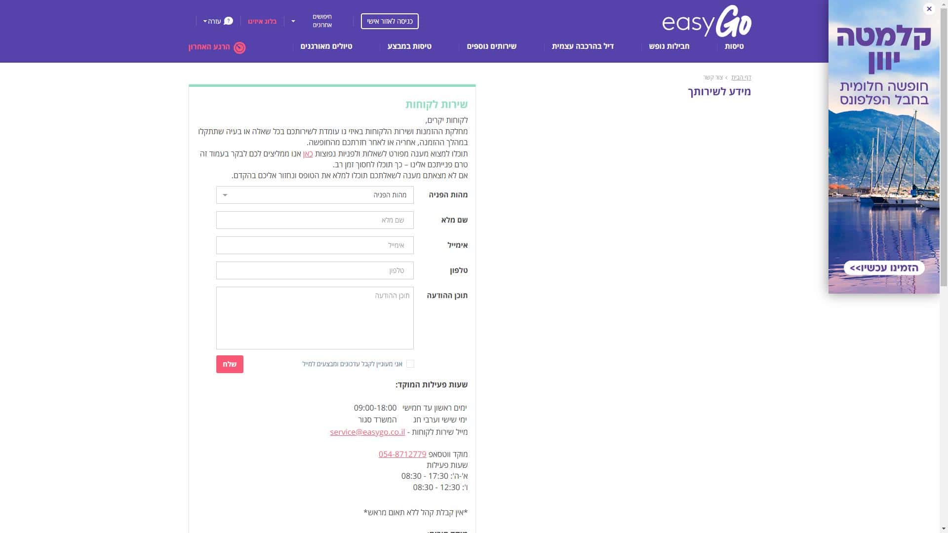 פרטים ליצירת קשר באמצעות דואר אלקטרוני –service@easygo.co.il .