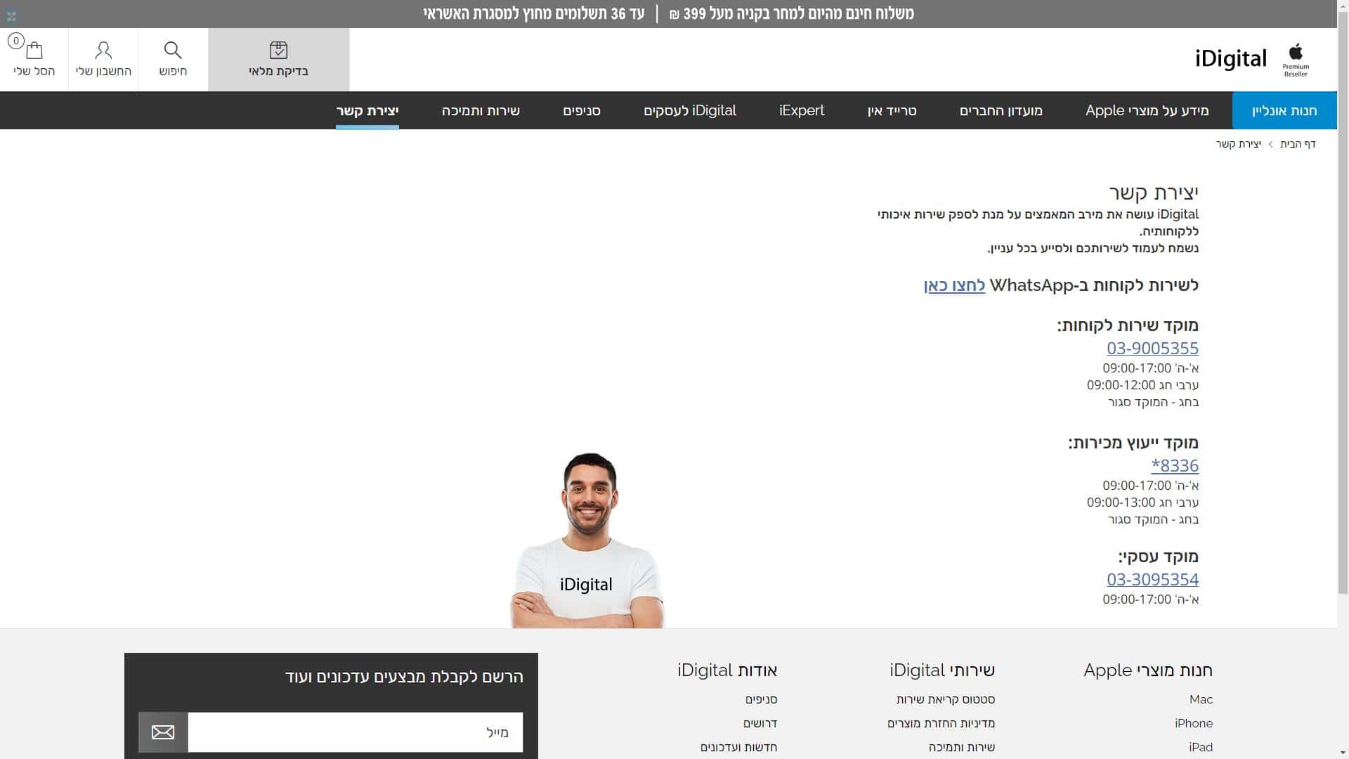 צילום מסך של שירות לקוחות איידיגיטל - iDigital
