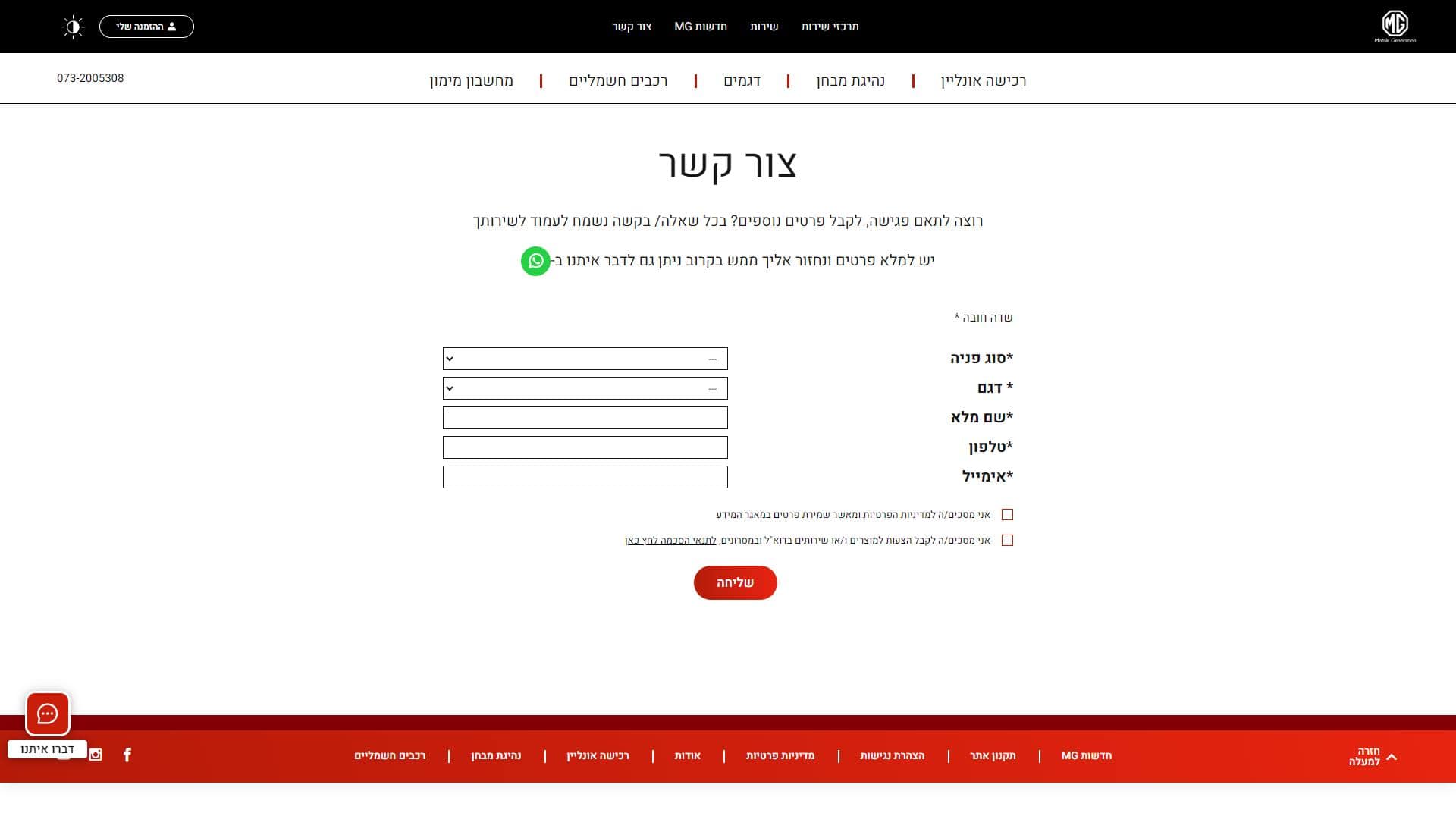 אם ג'י – MG – שירות באמצעות אתר האינטרנט