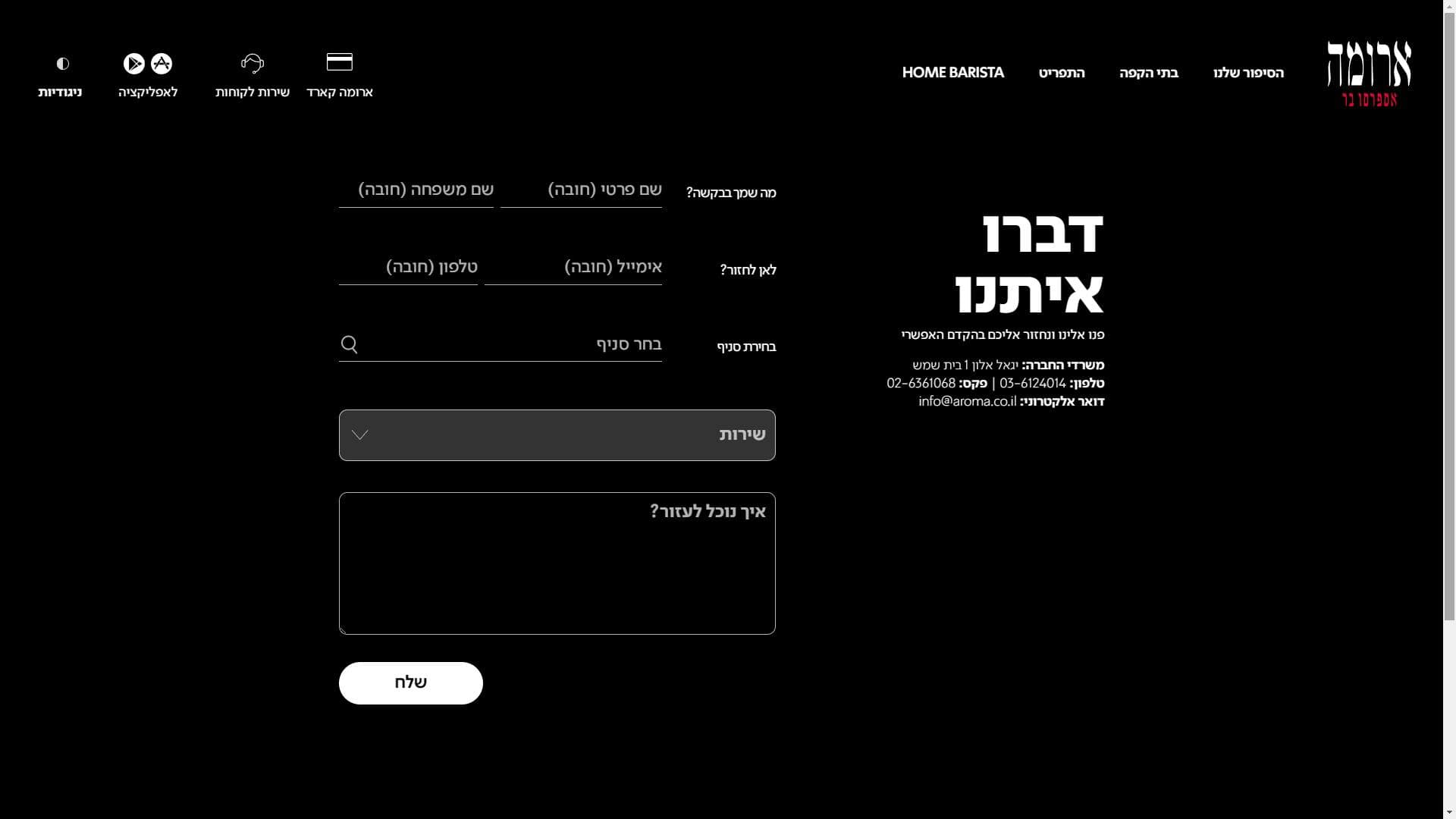ארומה תל אביב – Aroma TLV – שירות לקוחות – אתר אינטרנט