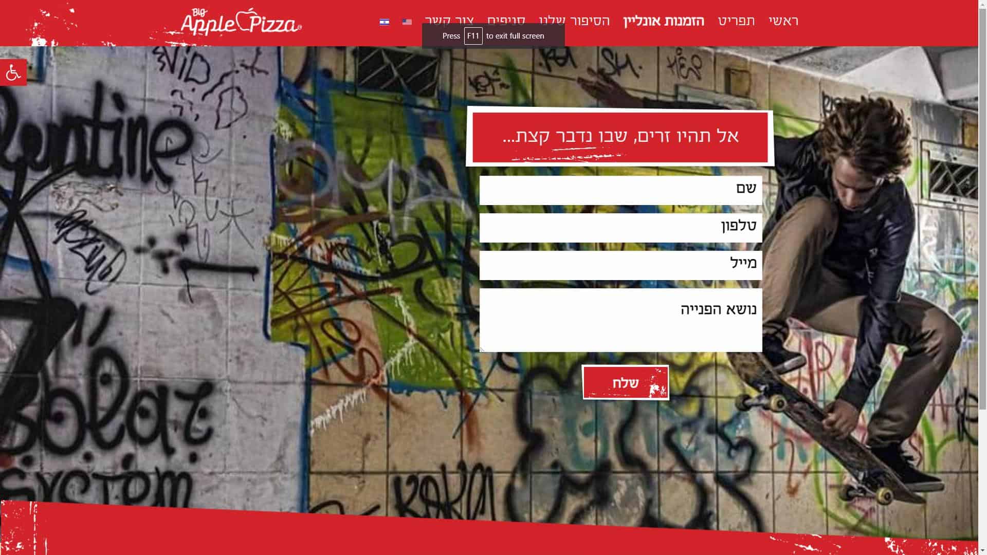 ביג אפל פיצה – Big Apple Pizza – שירות לקוחות באתר האינטרנט