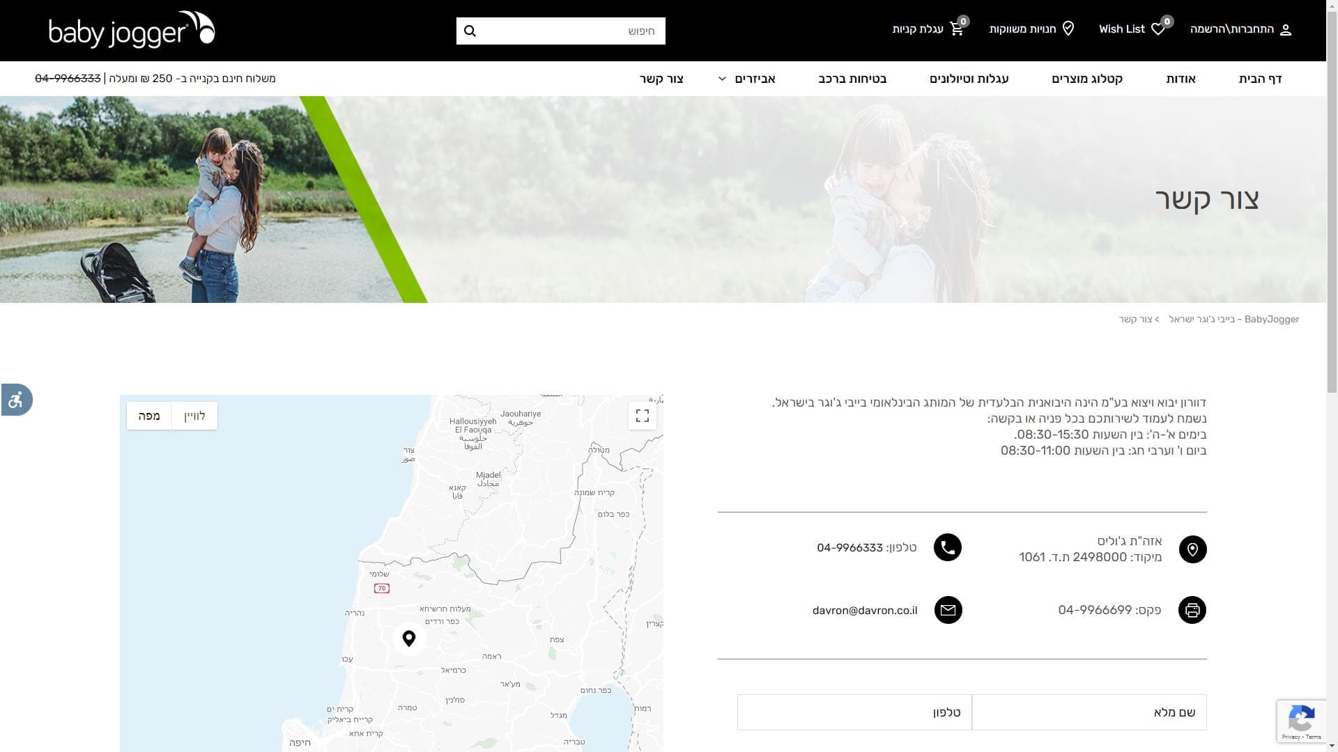 יצירת קשר עם שירות לקוחות בייבי ג'וגר באמצעות הטלפון: 04-9966333.