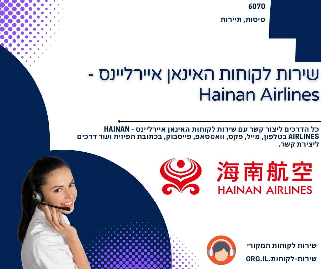 ניתן ליצור קשר עם מוקד שירות לקוחות האינאן איירליינס – Hainan Airlines בטלפון: 03-9096997.