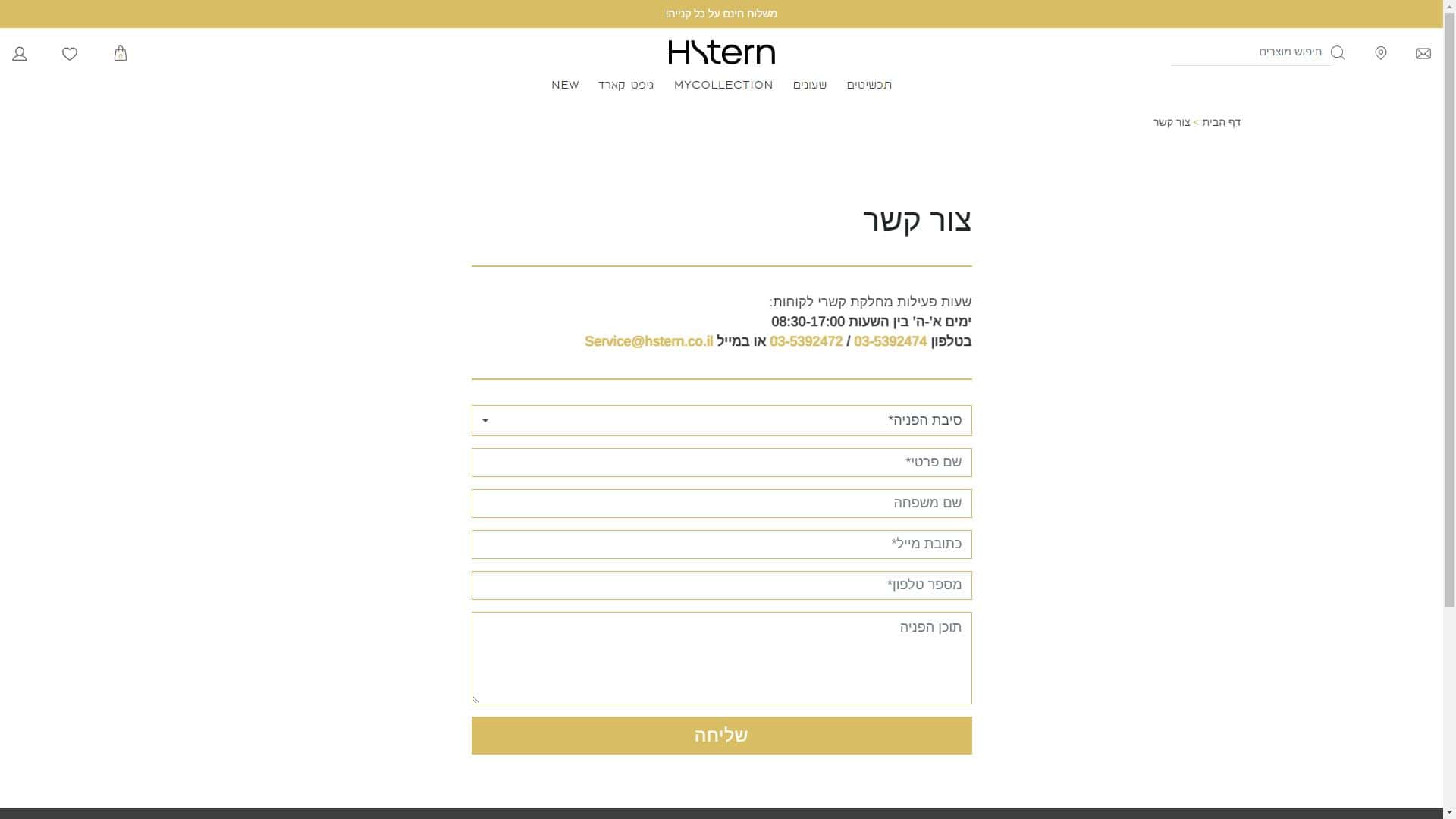 ה.סטרן – HStern ירושלים – שירות לקוחות – אתר אינטרנט
