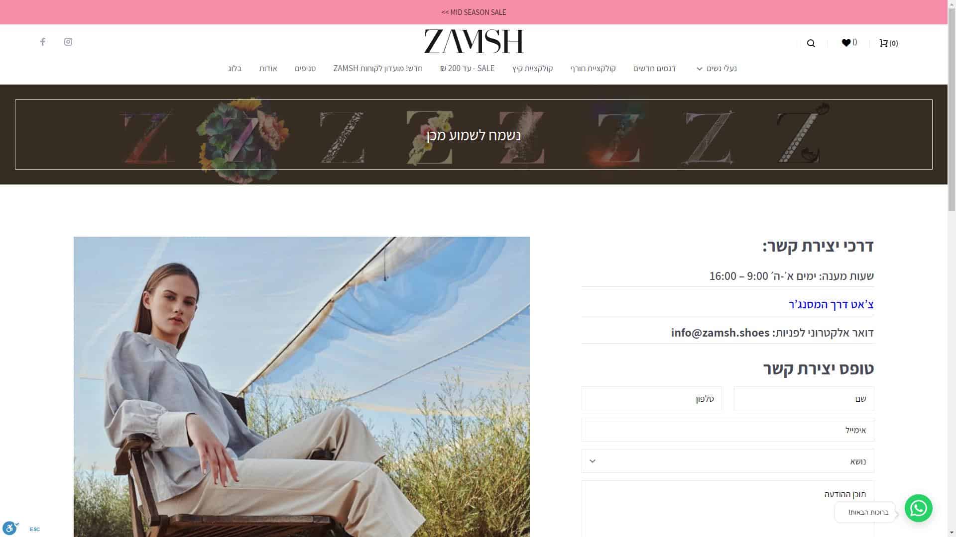 שירות לקוחות זמש זמין באמצעות דואר אלקטרוני בכתובת: info@zamsh.shoes.