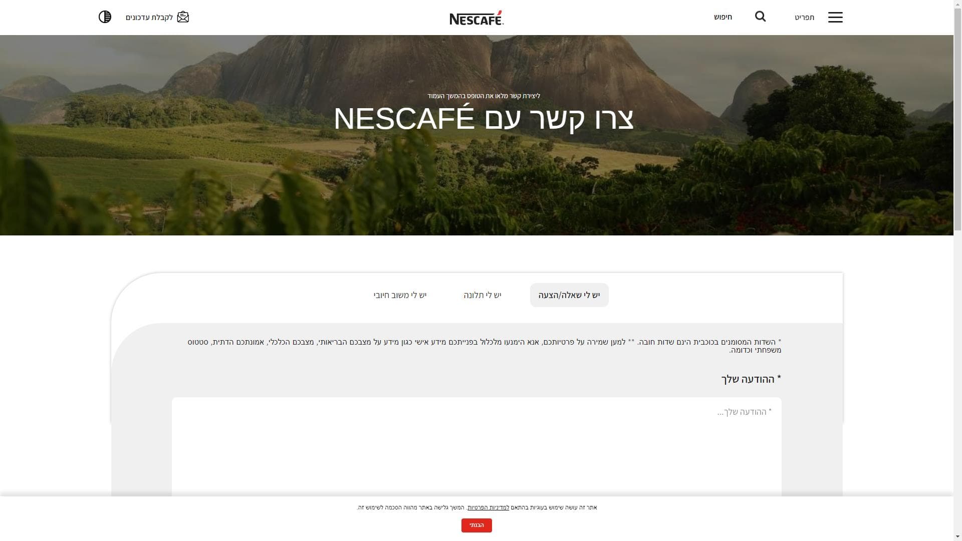 ניתן לפנות לשירות הלקוחות של טייסטר'ס צ'ויס – Taster's Choice באמצעות פייסבוק מסנג'ר: בקישור הזה.