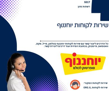 ריכזנו עבורכם את המידע הנחוץ ליצירת קשר עם שירות הלקוחות של יוחננוף. כל הפרטים המופיעים כאן נאספו על ידי צוות האתר על מנת לסייע לכם