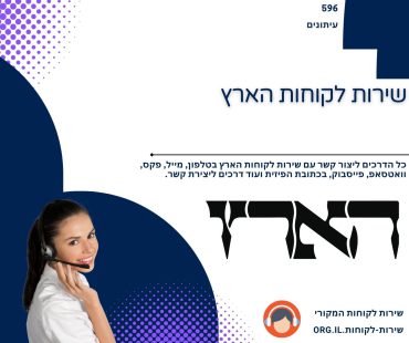 שירות הלקוחות של עיתון הארץ – כל הפרטים המעודכנים והדרכים ליצירת קשר עם שירות לקוחות הארץ, לשימושכם. בחרו אמצעי ליצירת קשר: טלפון אתר אינטרנט דואר