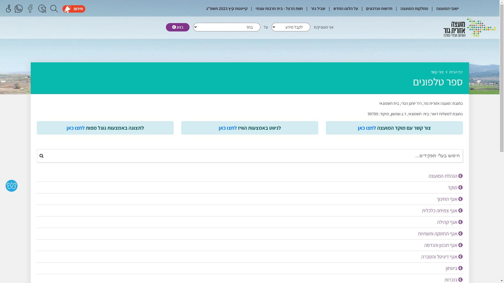 מועצה אזורית גזר – שירות לקוחות – אתר אינטרנט