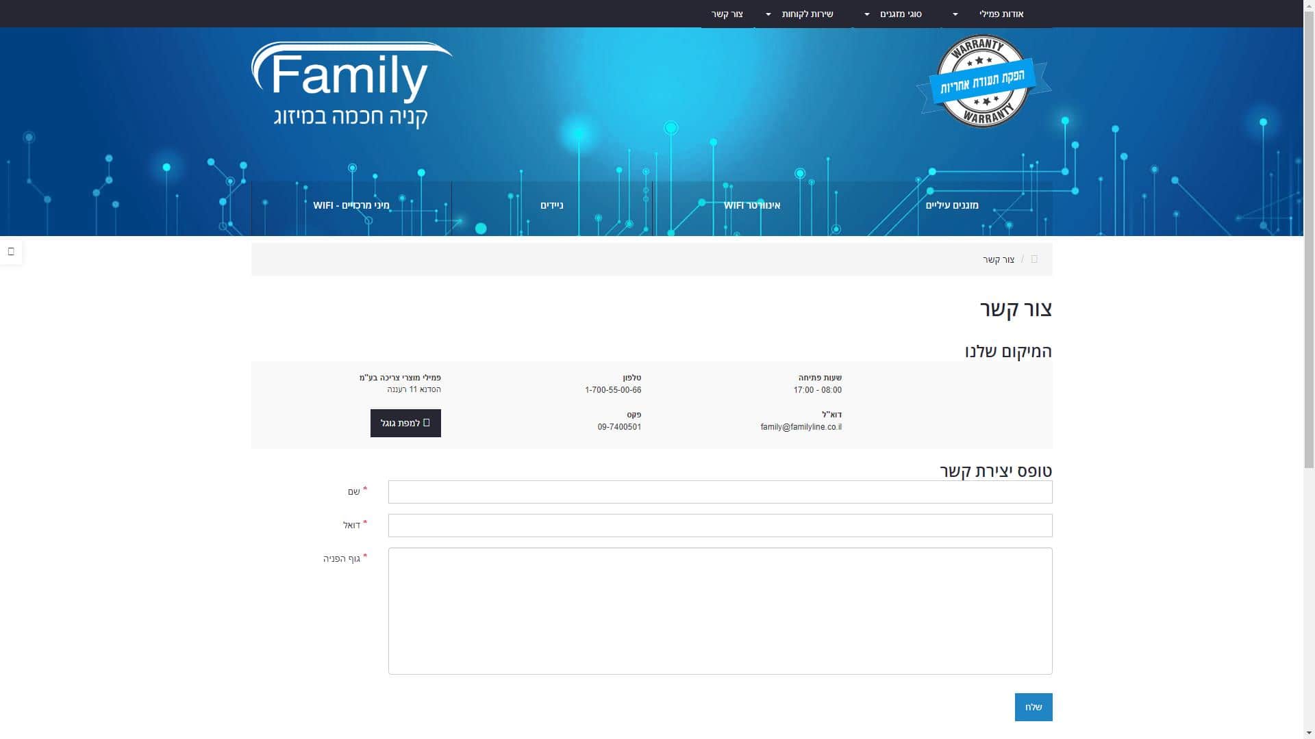 מזגני פמילי – שירות לקוחות – אתר אינטרנט