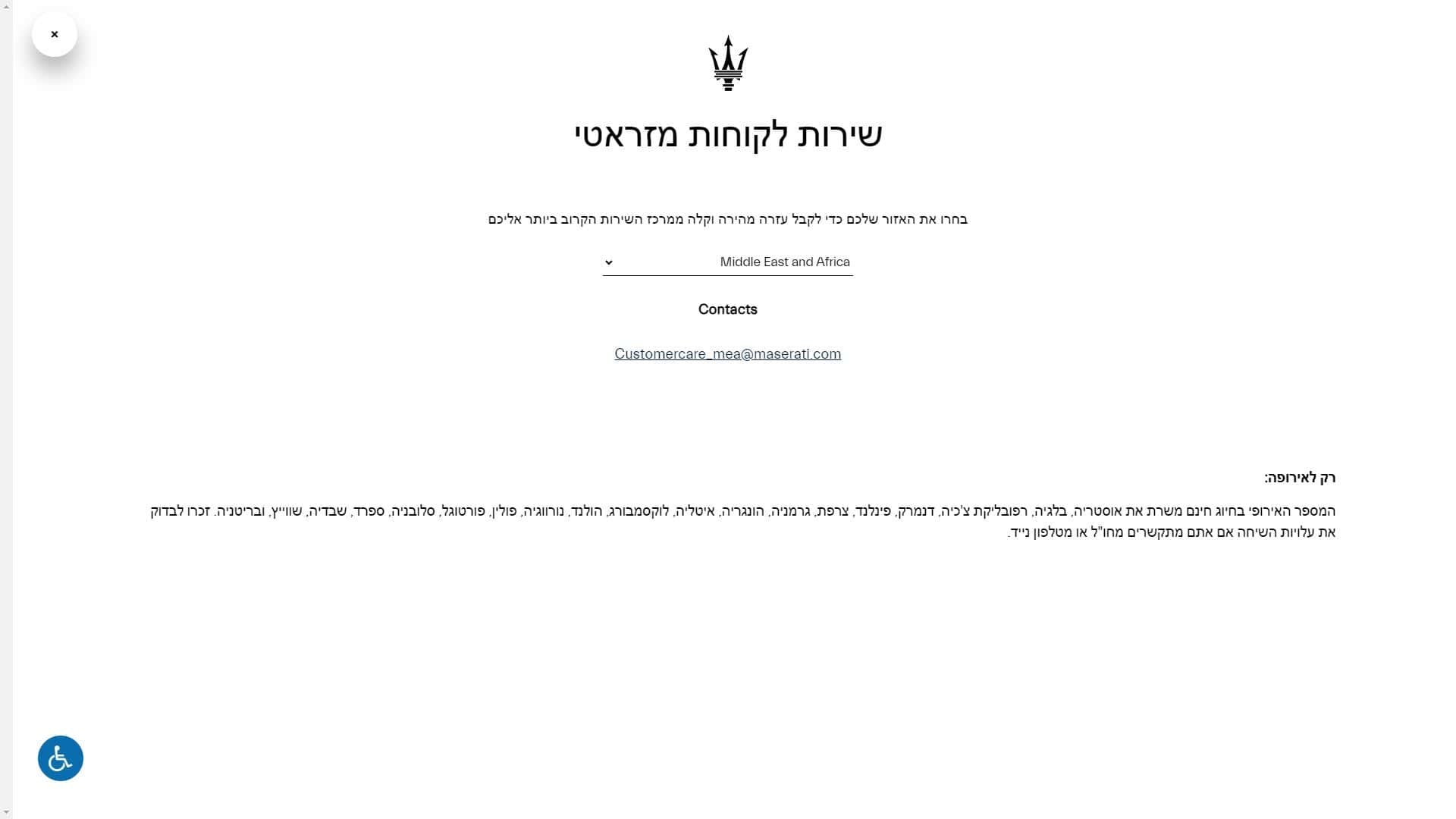לשירות לקוחות מזראטי באמצעות טופס ליצירת קשר דרך הקישור הזה.