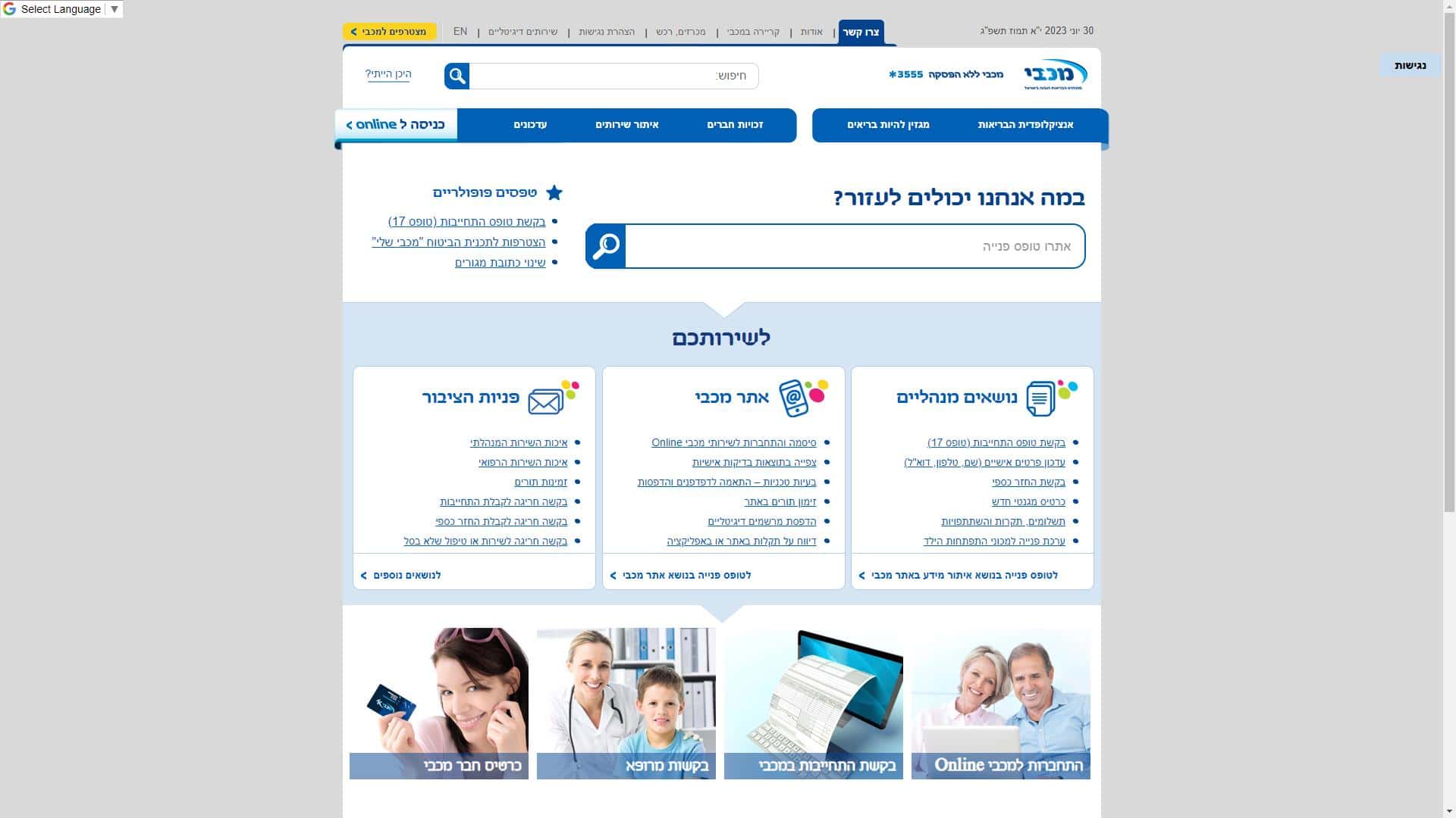 מכבי פארם – שירות לקוחות – אתר אינטרנט