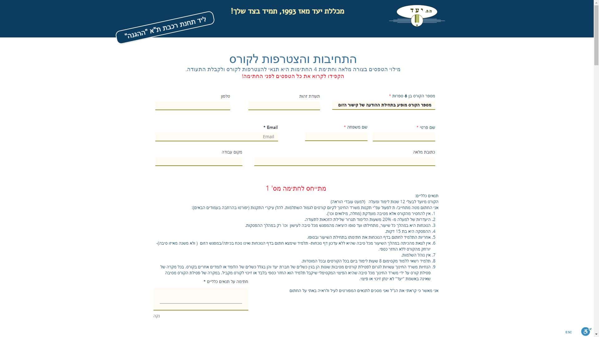 מכללת יעד טופס יצירת קשר צילום מסך