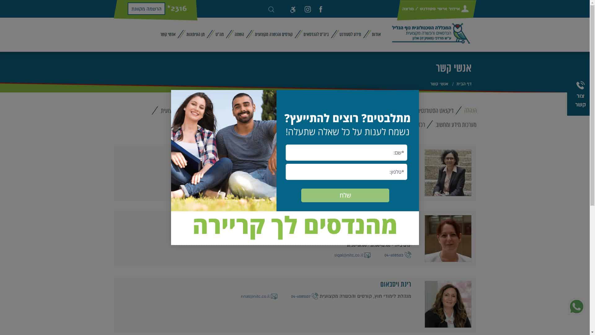 מכללת נצרת עילית יזרעאל טופס יצירת קשר צילום מסך