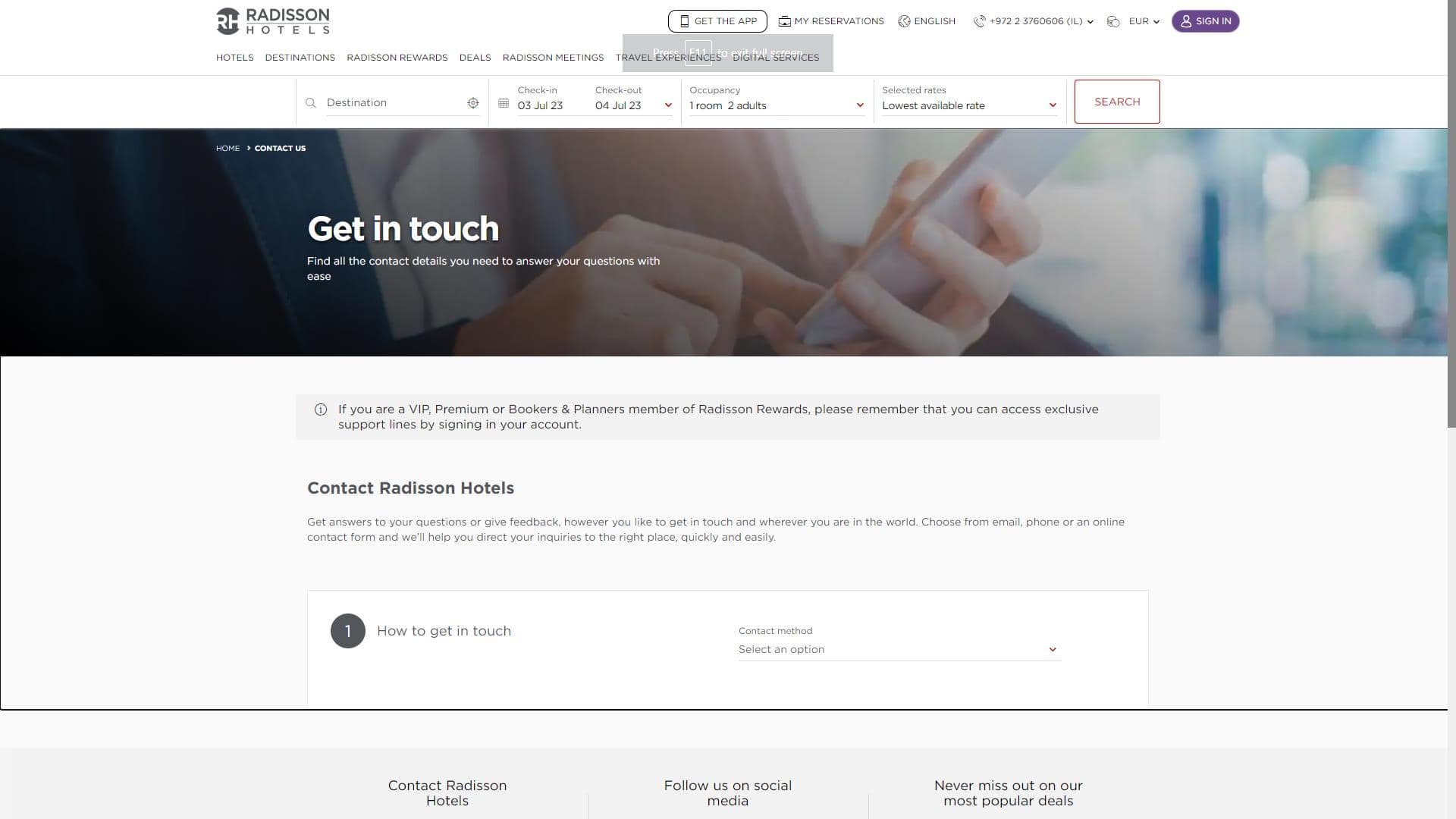 שירות לקוחות מלונות רדיסון באמצעות טופס ליצירת קשר באתר האינטרנט – בקישור הזה.