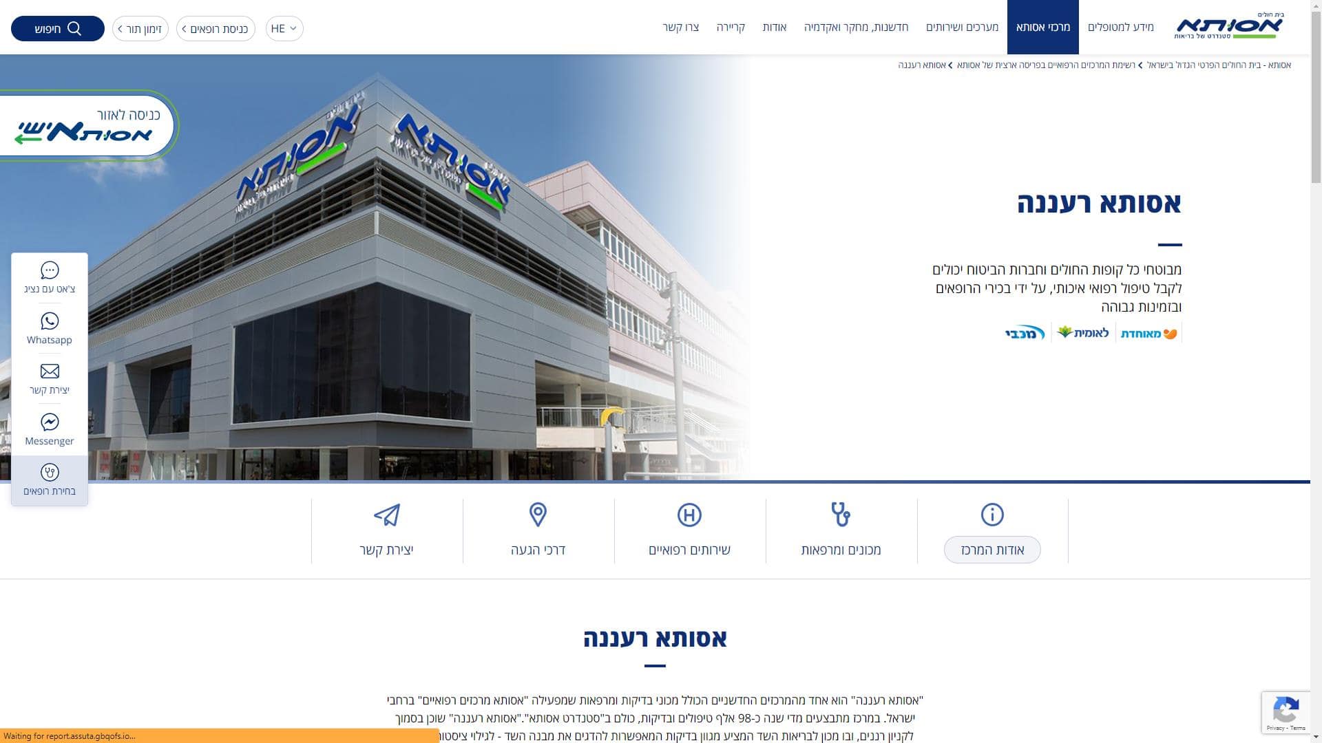 מרכז רפואי אסותא רעננה – שירות לקוחות – אתר אינטרנט