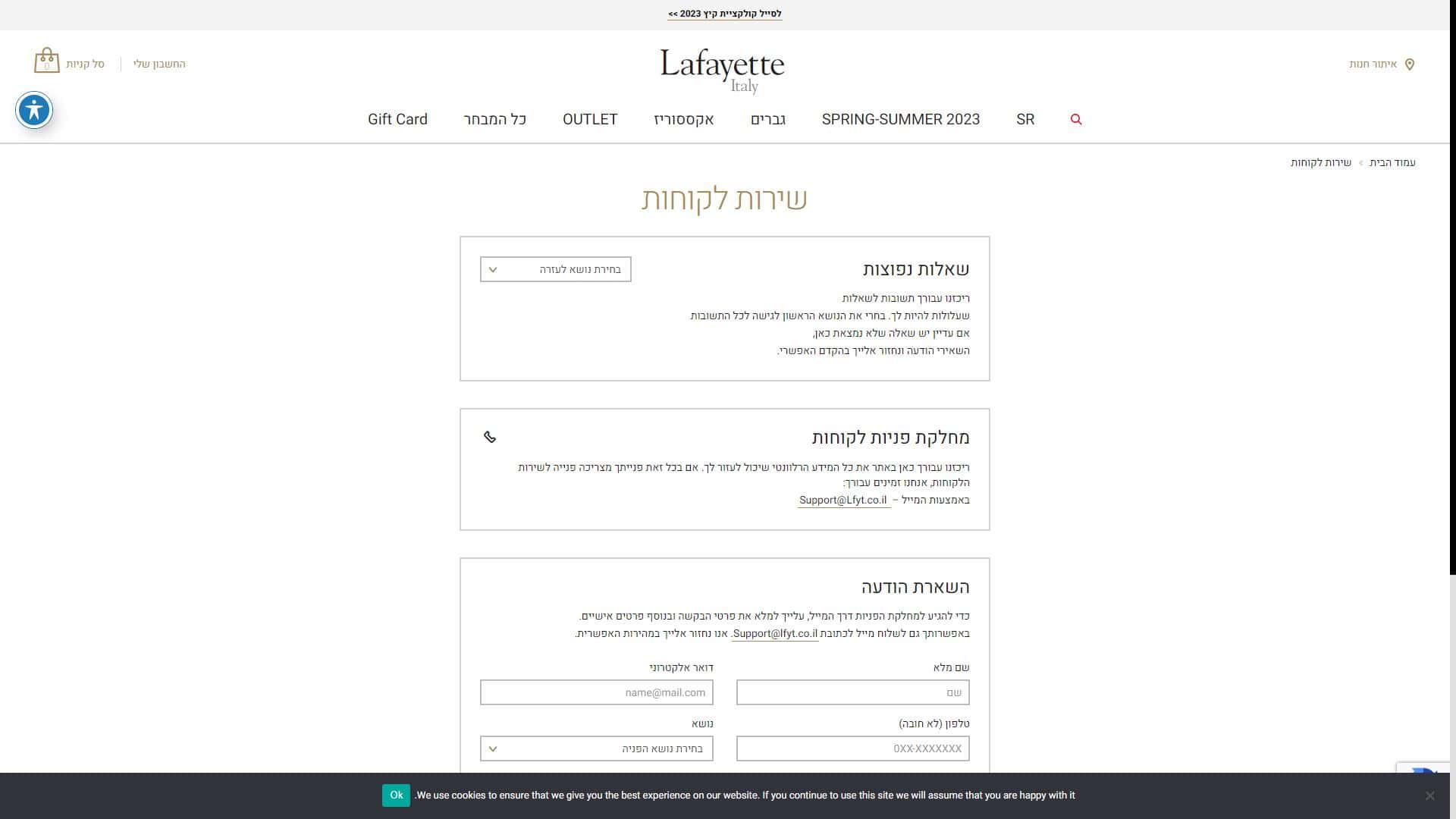 נעלי לאפייט – שירות לקוחות – אתר אינטרנט