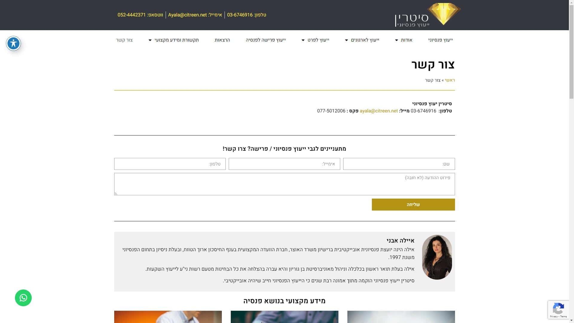כתובת הדואר האלקטרוני של שירות לקוחות סיטרין ייעוץ פנסיוני היא: ayala@citreen.net.