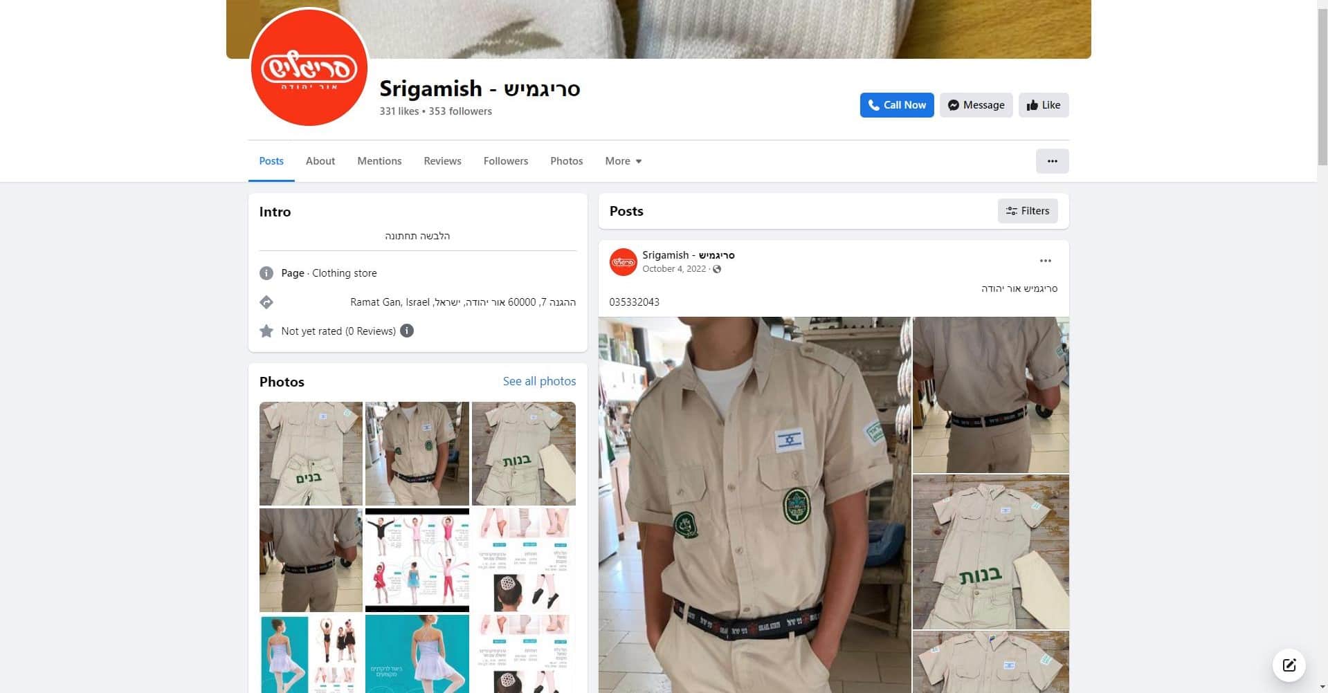 סריגמיש אור יהודה – שירות לקוחות – פייסבוק – facebook