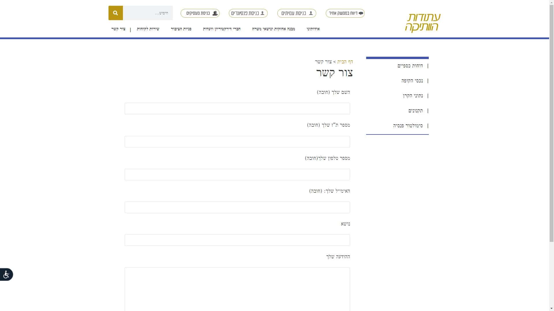 עתודות טופס יצירת קשר צילום מסך