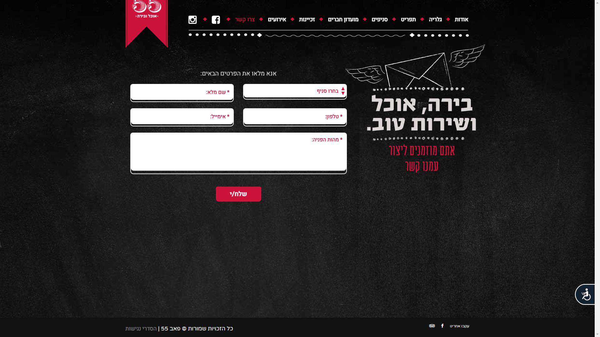 פאב 55 אוכל ובירה – שירות לקוחות באמצעות אתר האינטרנט