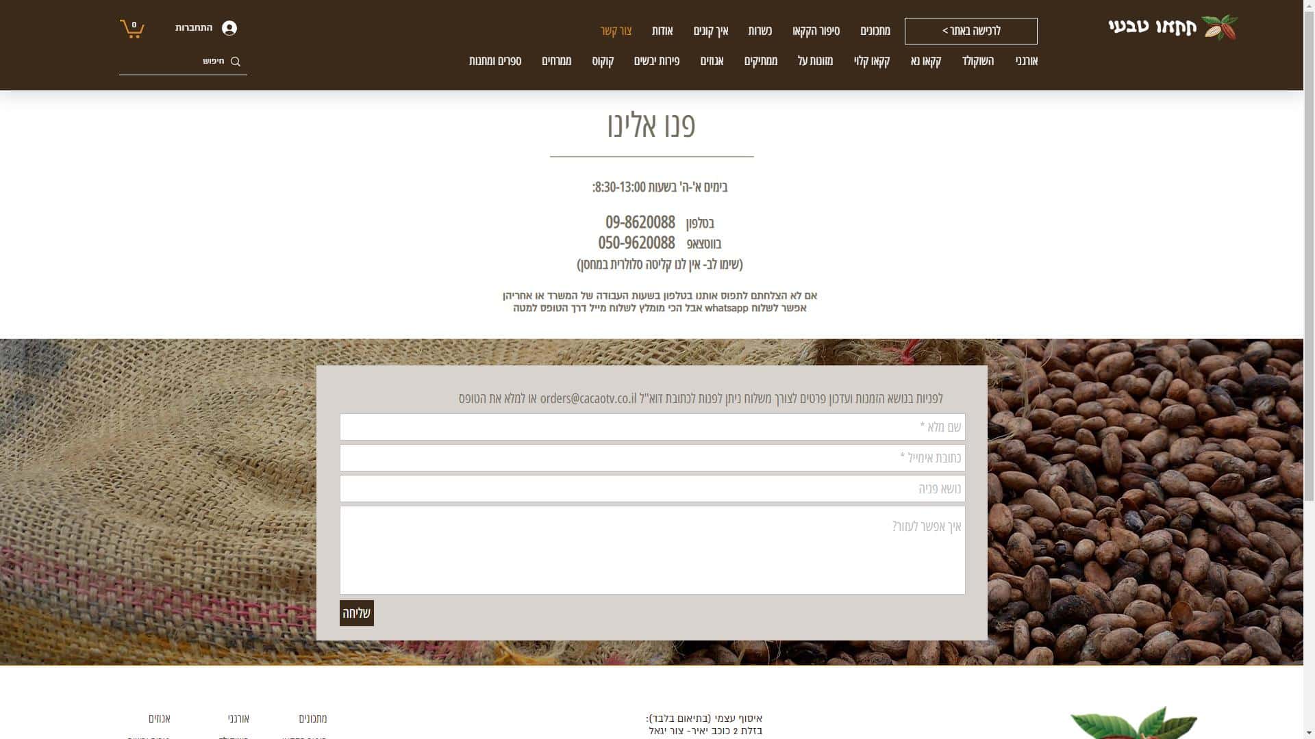 יצירת קשר עם שירות לקוחות קקאו באמצעות הטלפון: 03-6347030.