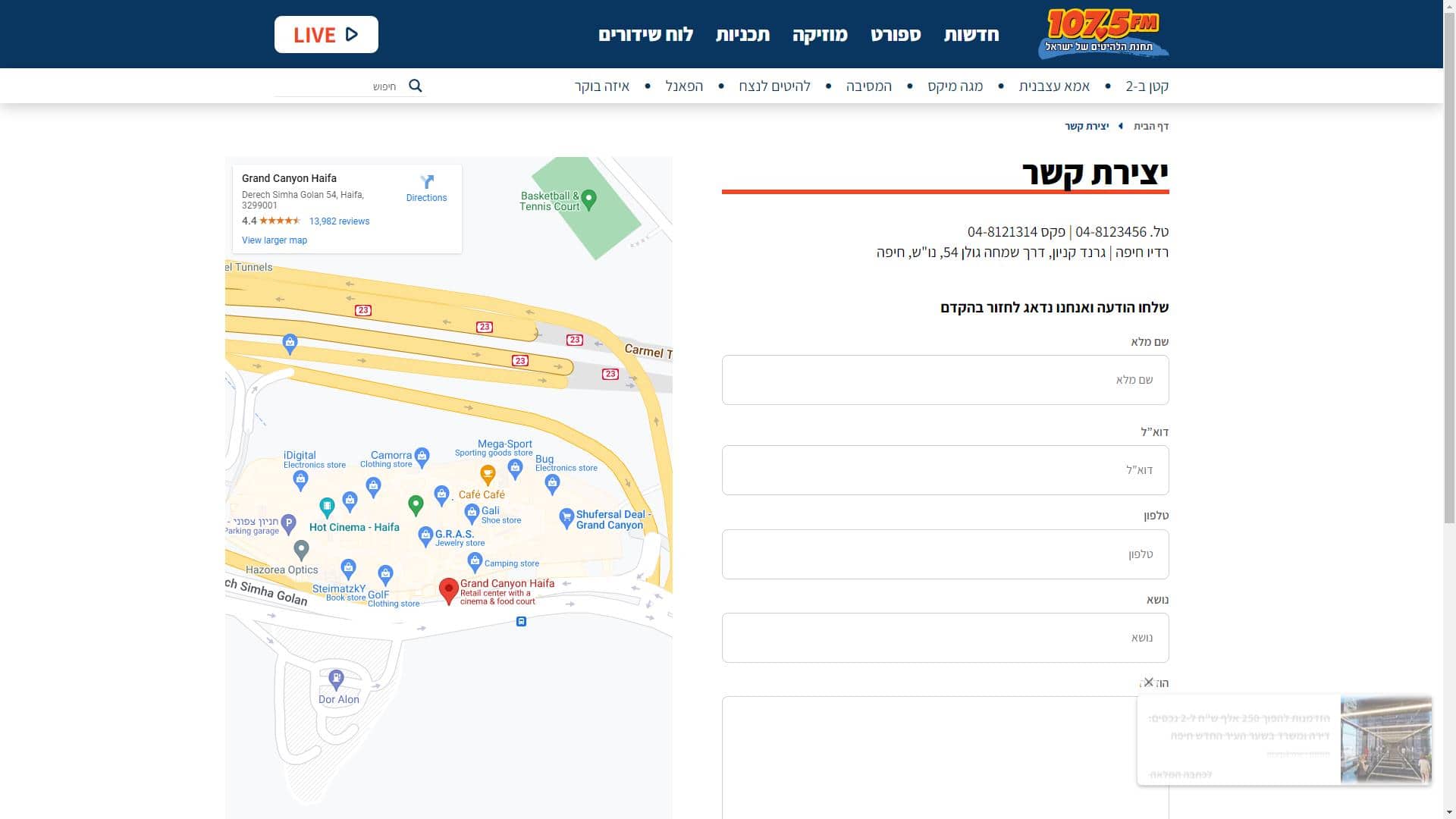 רדיו חיפה טופס יצירת קשר צילום מסך