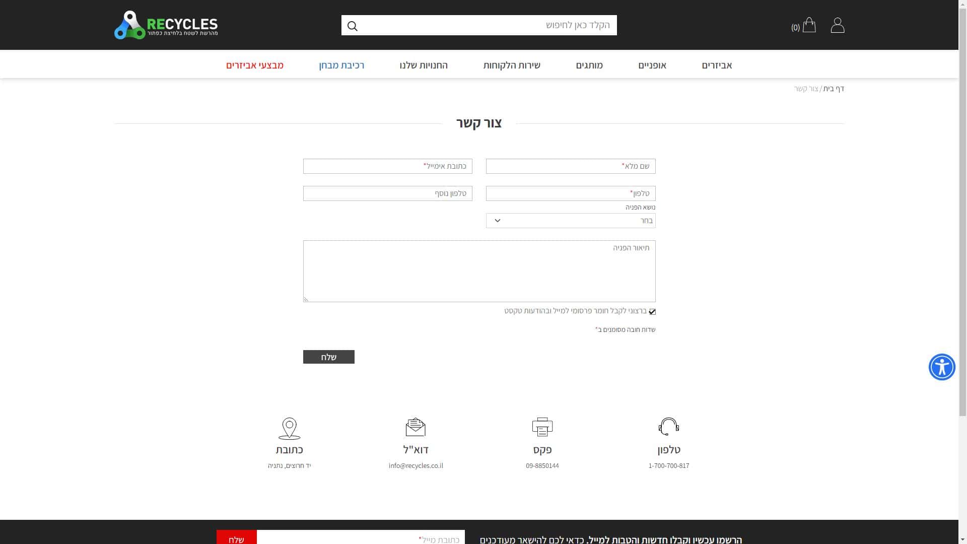 פנייה אל שירות לקוחות ריסייקלס באמצעות דואר אלקטרוני בכתובת: info@recycles.co.il.