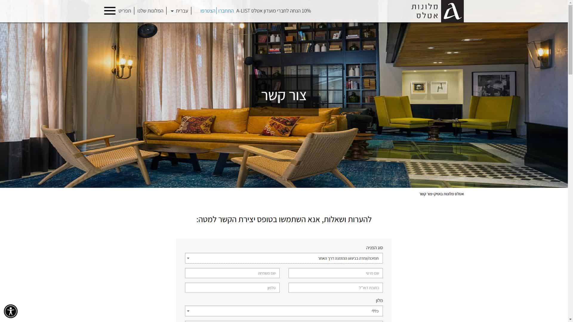 רשת מלונות אטלס – שירות לקוחות – אתר אינטרנט