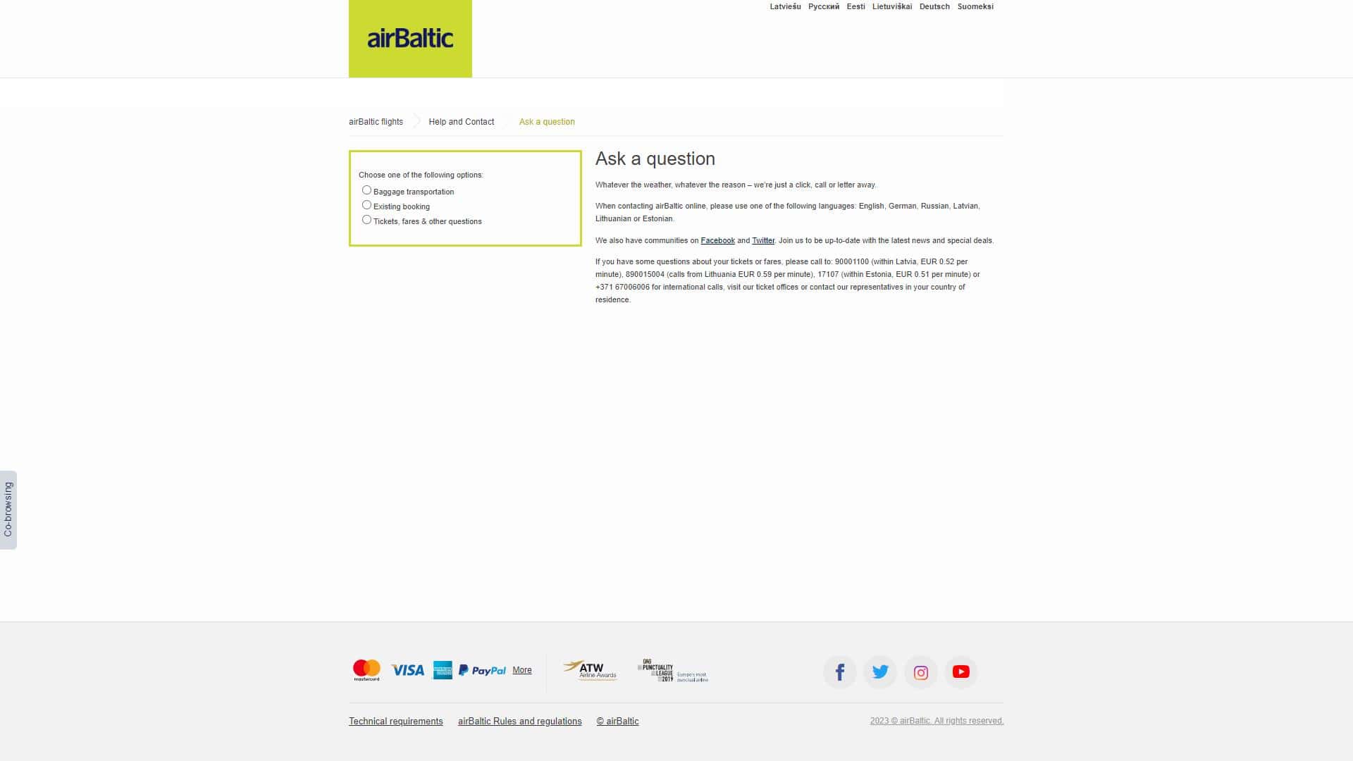 Air Baltic – אייר בלטיק – שירות לקוחות – אתר אינטרנט