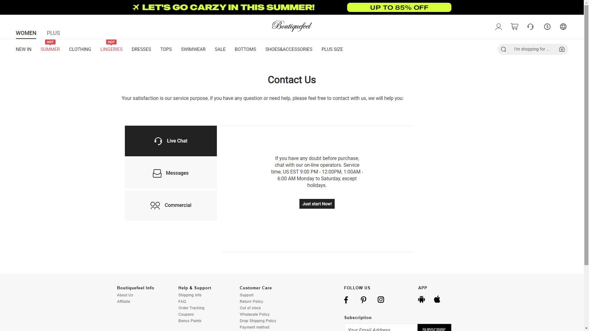 Boutiquefeel – בוטיקפיל – שירות לקוחות – אתר אינטרנט