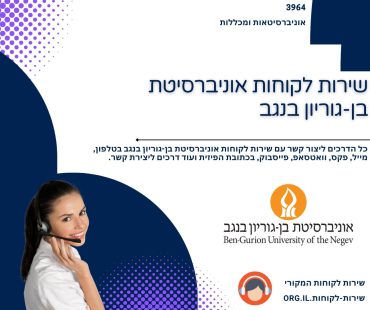 שירות הלקוחות של אוניברסיטת בן-גוריון בנגב. כל הפרטים המעודכנים והדרכים ליצירת קשר עם שירות לקוחות אוניברסיטת בן-גוריון בנגב. אפשרויות ליצירת קשר: אוניברסיטת בן-גוריון בנגב –