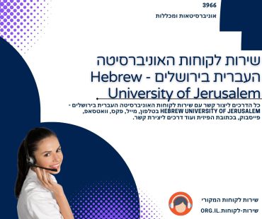 כל הפרטים ליצירת קשר עם שירות לקוחות האוניברסיטה העברית בירושלים – Hebrew University of Jerusalem, באמצעות הטלפון, דוא"ל, אתר האינטרנט, חשבונות המדיה החברתית של האוניברסיטה