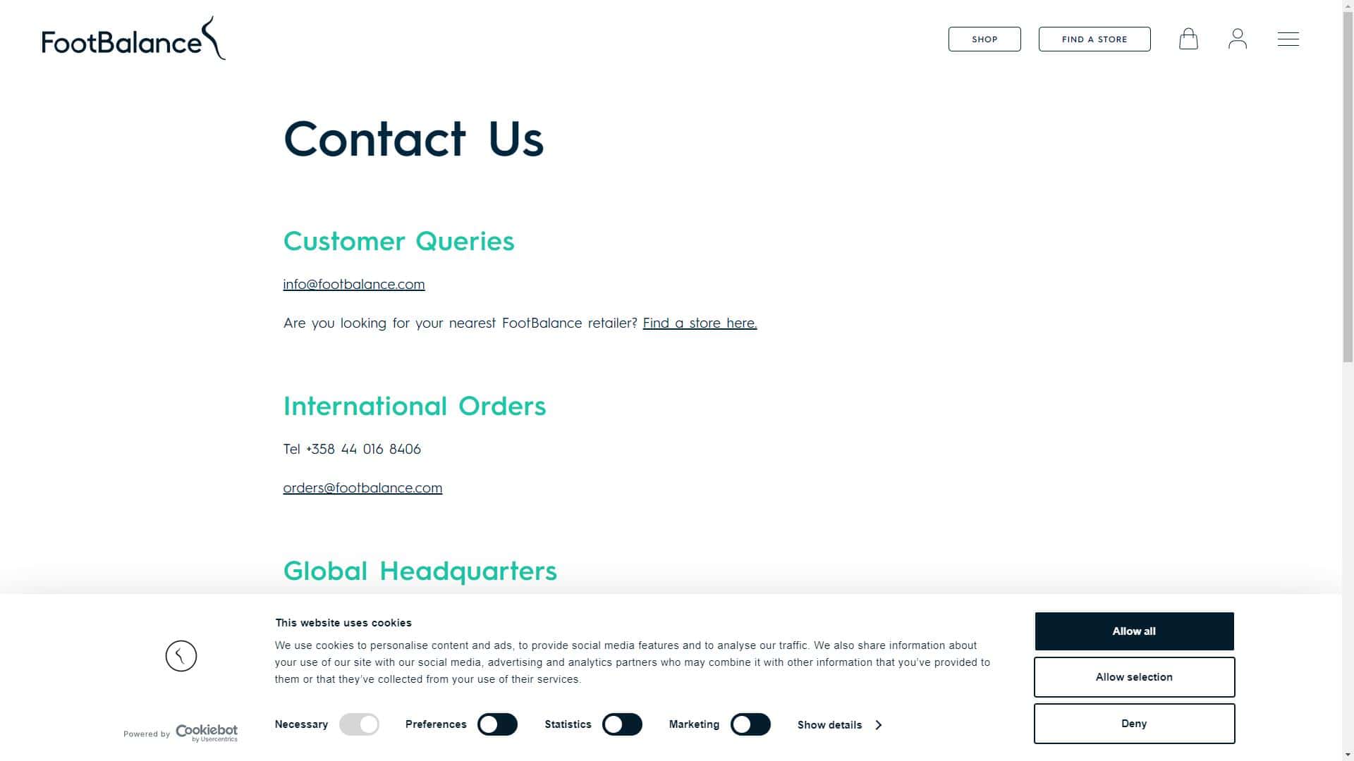 FootBalance – פוטבאלאנס – שירות לקוחות – אתר אינטרנט