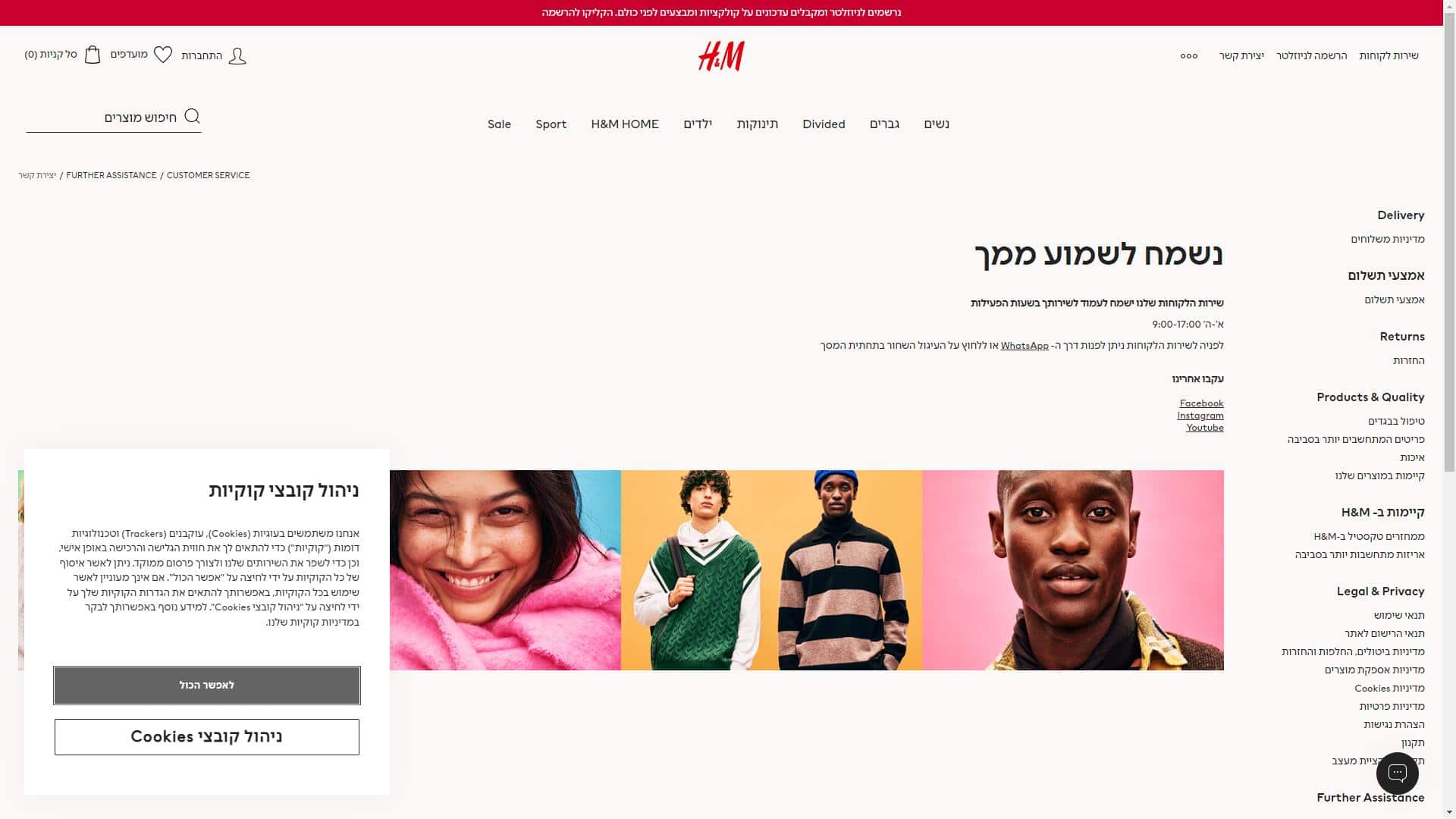 H&M הום – שירות לקוחות – אתר אינטרנט