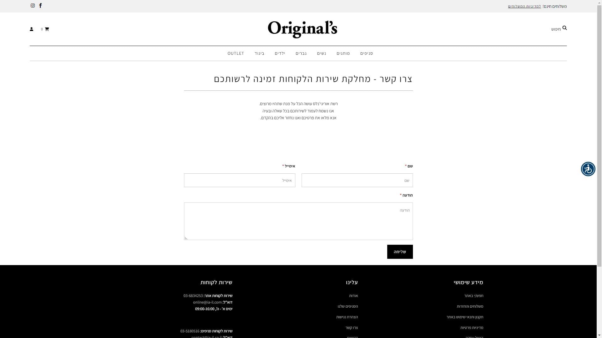 Original's – אוריגינלס – שירות לקוחות באתר האינטרנט