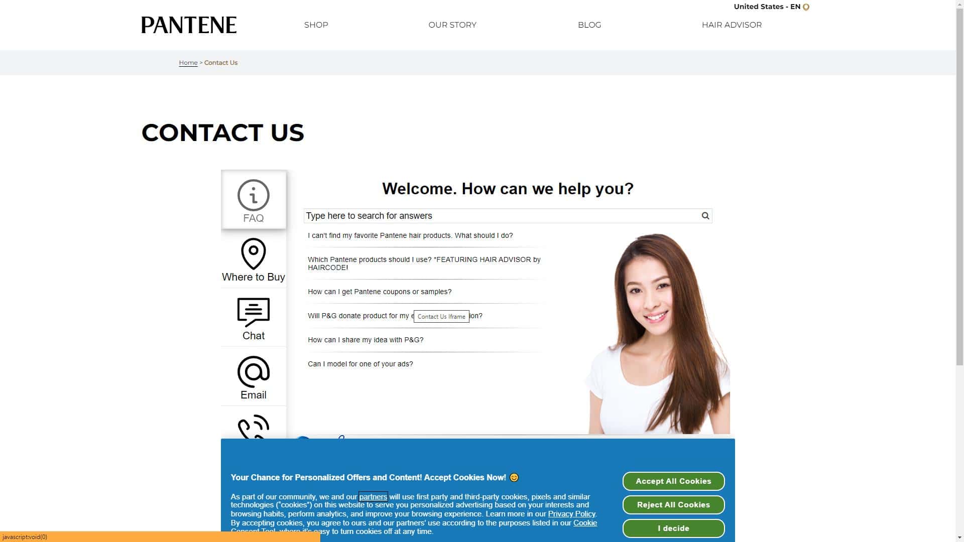 Pantene – פנטן – שירות לקוחות – אתר אינטרנט