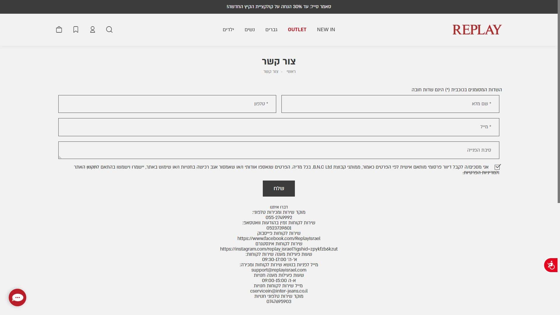 Replay – ריפליי – שירות לקוחות – אתר אינטרנט