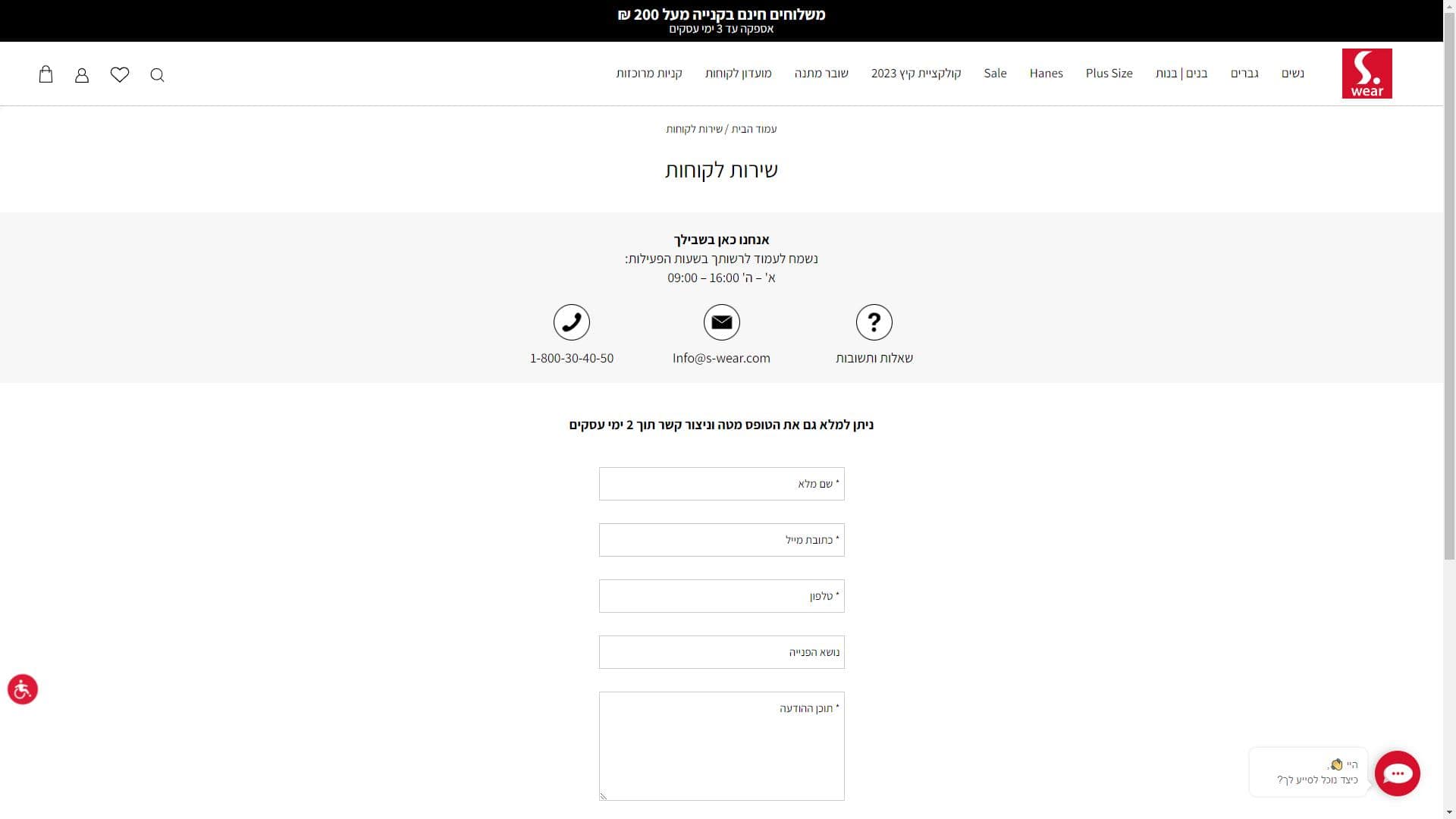 S.Wear Hanes הנס – שירות לקוחות – אתר אינטרנט