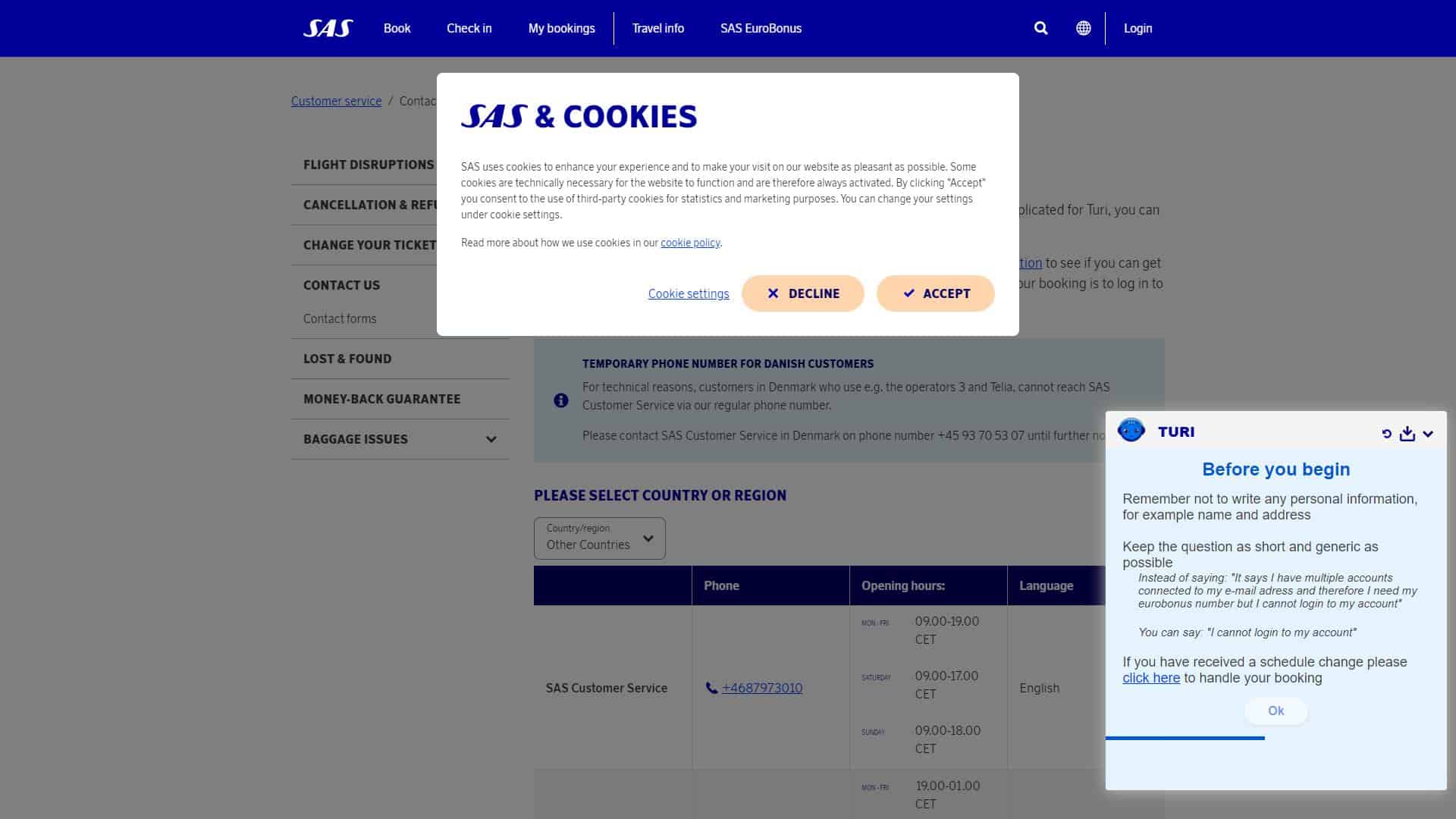 SAS – שירות לקוחות – אתר אינטרנט